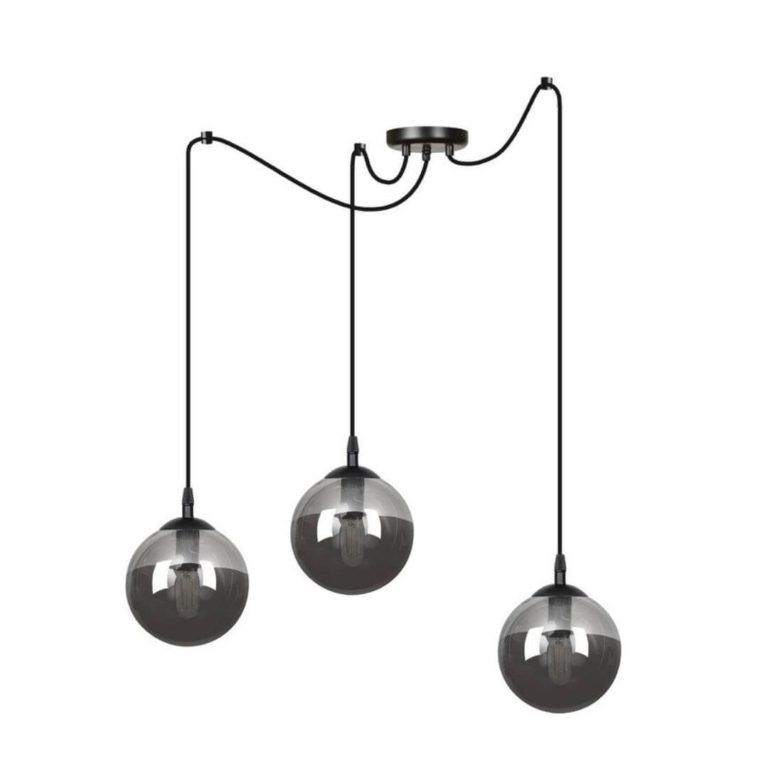 Funkcjonalność doskonale łączy się w tym modelu z modnym designem, który w linii prostej nawiązuje do stylu industrialnego. Podsufitka, przewody i trzy kuliste klosze – tak w skrócie prezentuje się lampa wisząca Blair 3 Ring. Stelaż wykonany został z metalu, który pomalowano proszkowo na czarno. Czarne są również przewody zasilające źródła światła w energię elektryczną. Klosze wykonano ze szkła o intrygującym, grafitowym odcieniu, który zdecydowanie dodaje całości charakteru.