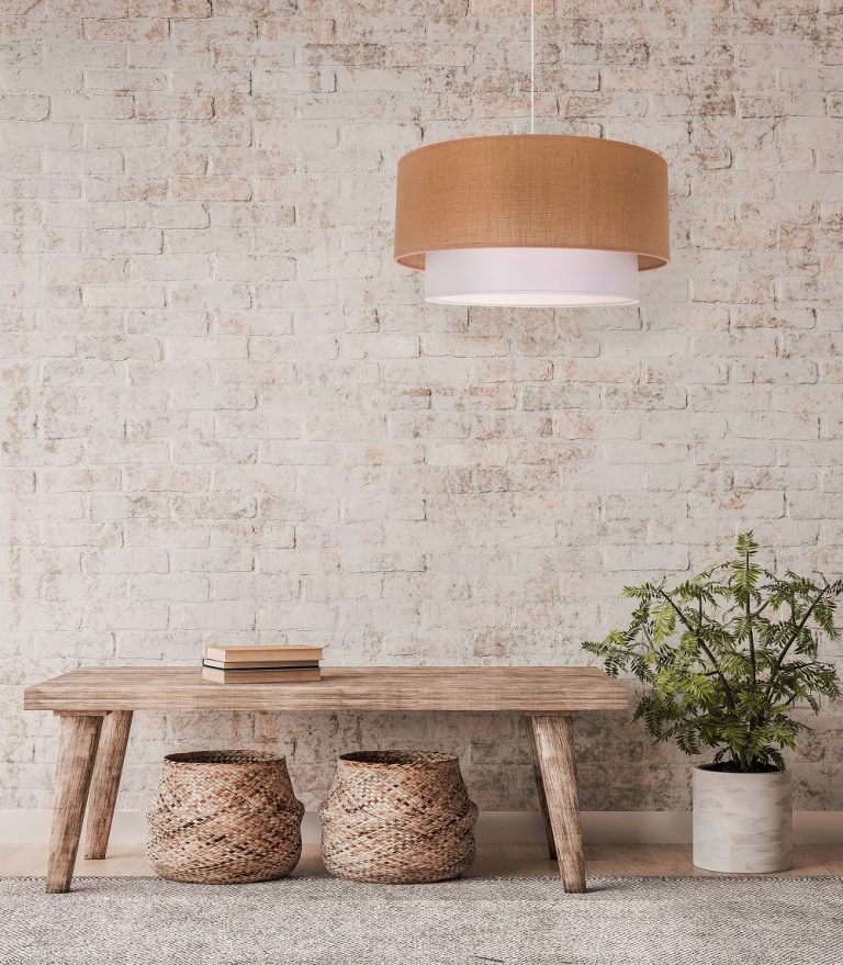 Powinno być ciepłe i przytulne zwłaszcza w szare, deszczowe dni. Lampa wisząca z podwójnym abażurem Boho wniesie do wnętrza ciepło, którego w nim brakuje. Oczywiście jeśli pracujemy w pomieszczeniach należy wybrać światło barwy białej. Konstrukcja abażuru oferowanej przez nas lampy zapewnia wyjątkowe efekty oświetleniowe dzięki delikatnej transparentności juty i tkaniny strukturalnej, z której został wykonany.
