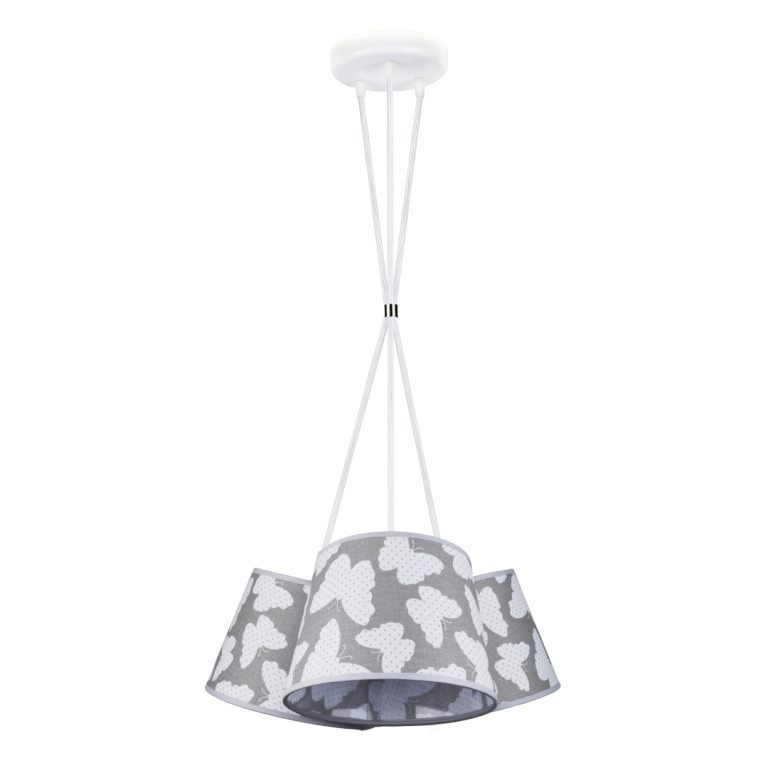 Dzięki uniwersalnym kolorom takim jak szarość i biel Butterfly doskonałe wpisze się zarówno w pokój malutkiej dziewczynki, jak i chłopca. Model z motylkami pasuje nie tylko do pomieszczeń przeznaczonych dla najmłodszych, ale także dla naszych starszych pociech. Abażury wykonane z najwyższej jakości tkaniny i tworzywa sztucznego są łatwe w pielęgnacji oraz odporne na uszkodzenia.