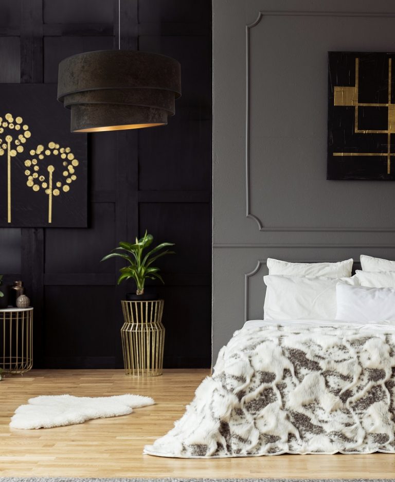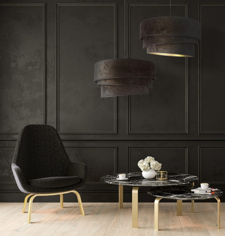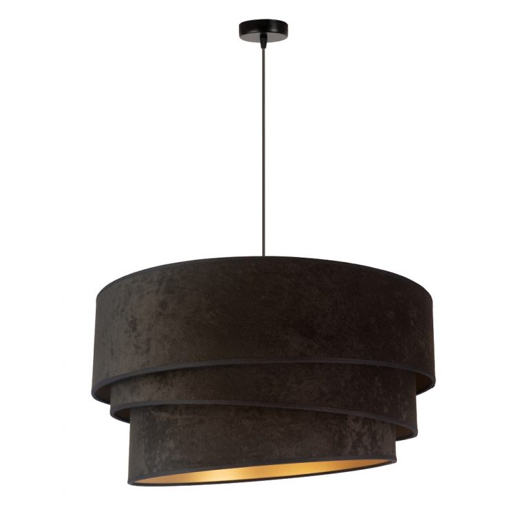 Czerń i złoto — to dwa kolory od zawsze kojarzone z klasą i elegancją. To właśnie one zdobią abażur lampy wiszącej Devon. On sam wykonany został z najwyższej jakości zamszu i złotej folii. O ile kolor czarny nadaje abażurowi wyjątkowy charakter, to złoto znacznie podnosi jego prestiż. Lampa wisząca Devon dzięki swojemu wyjątkowemu abażurowi wniesie do Twojego wnętrza powiew świeżości.