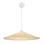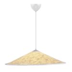 Lampa wisząca do salonu Hill 3 zwraca uwagę szerokim kloszem w stożkowym kształcie, który skutecznie rozprowadza światło. Średnica klosza wynosi aż 85 cm! Abażur oferowanego oświetlenia wykonany został z nowoczesnego materiału, jakim jest tyvek. To rodzaj syntetycznego papieru o zwiększonej trwałości. Lampa wisząca Hill 3 ze stożkowym abażurem z tyveku uzupełniana jest o metalowe elementy i przystosowana do trzech żarówek, również ściemnialnych.