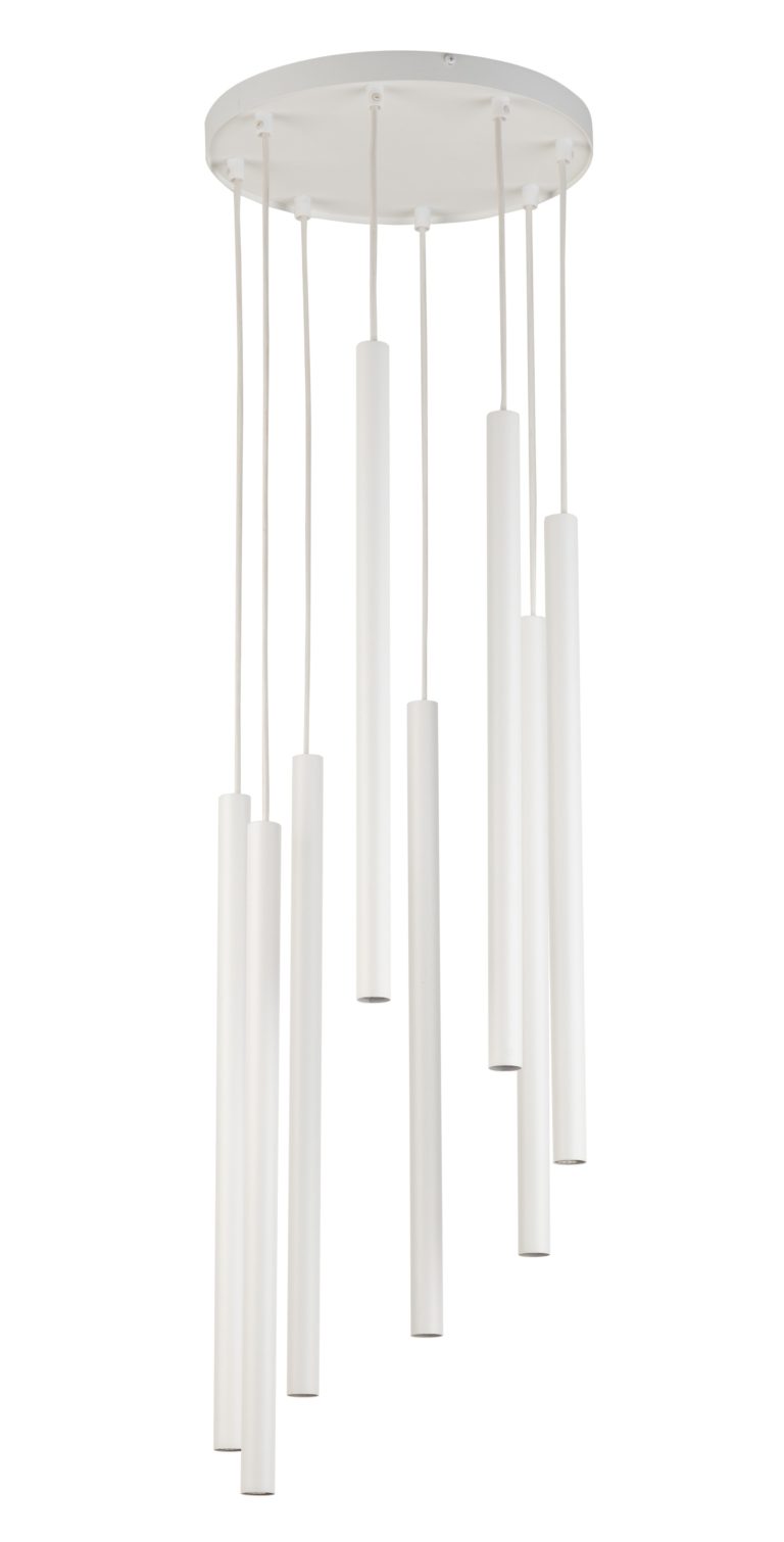 Zawieszone na różnych poziomach klosze-tuby prezentują się nadzwyczaj efektownie, dając wrażenie wyspy świetlnej. Metalowa lampa wisząca kaskadowa Icicle Ring 8 doskonale pasuje do wielu współczesnych trendów wnętrzarskich – znakomicie zestawia się, chociażby z aranżacjami minimalistycznymi. Lampa wisząca Icicle Ring 8 z kloszem w kształcie tuby charakteryzuje się również uniwersalnym białym kolorem, który wkomponuje się w wystrój o każdej tonacji.