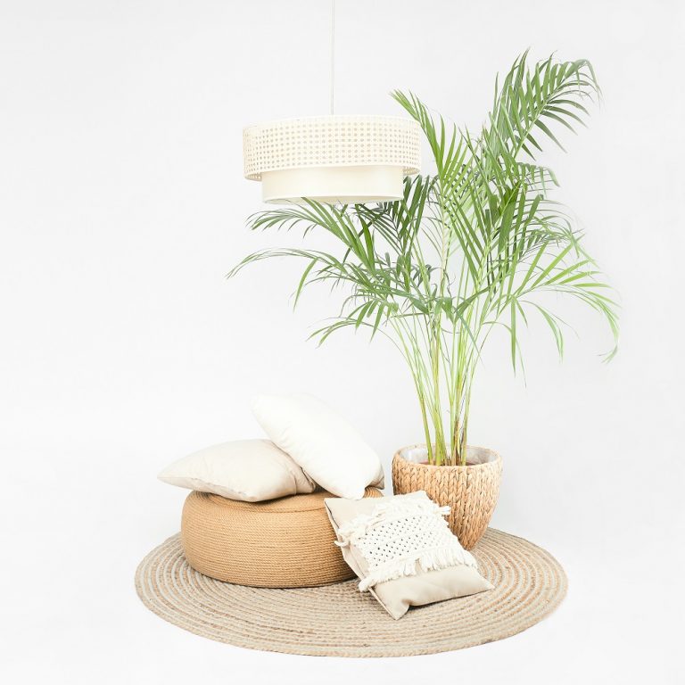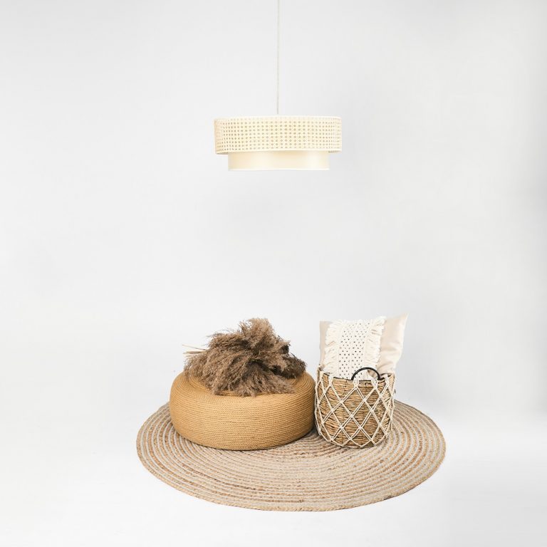 Rattan to naturalny i popularny materiał wykorzystywany w elementach wyposażenia wnętrz. Dzięki temu Lampa sufitowa z rattanu Jakarta nie tylko nadaje wnętrzom ciepła i przytulności, ale też świetnie wpisuje się w modny trend eco. Bardzo dobrze wygląda w zestawieniu z innymi naturalnymi dodatkami. Plecione dywany, kosze, pufy, meble i doniczki czy poduszki w podobnej kolorystyce, ale też w połączeniu z mocniejszymi akcentami, a do tego lampa z rattanu to ekologiczna i naturalna aranżacja wnętrz. Z pewnością duża ilość tkanin pasuje do tej lampy, jak również dodatek kwiatów doniczkowych, wszelkich haftów i plecionek.