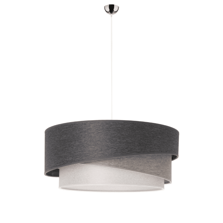Ten model to całkowity miszmasz, Zarówno kolorów, jak i kształtów. Mimo tego chaosu w lampie wiszącej Kobo można odnaleźć ład, spokój i harmonię. Abażur tego modelu wykonany został z najwyższej jakości tkaniny, która zapewnia mu odporność na uszkodzenia. Dodatkowym jej atutem jest przepuszczalność światła. Dzięki temu naokoło zaświeconej lampy pojawia się delikatna poświata. Abażur łączy w sobie trzy kolory – szary, ciemnoszary i jasnoszary. To właśnie one pomimo różnorodności stanowią ład i swego rodzaju harmonię. Głównie ze względu na to, że są po prostu różnymi odcieniami szarości. Geometria i asymetria wykorzystane w abażurze nadają mu wyjątkowy charakter. Lampa wisząca Kobo wniesie do Twojego wnętrza nową energię.