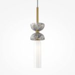 Lampa wisząca Kyoto w unikatowym designie składa się z podsufitki, przewodu oraz klosza, który jest najbardziej charakterystycznym elementem całości. Klosz posiada marmurowe elementy, które wraz z pozostałą częścią oświetlenia prezentują się zjawiskowo!
