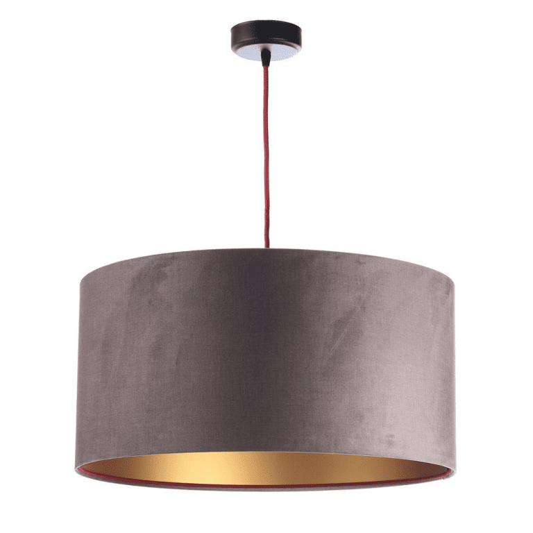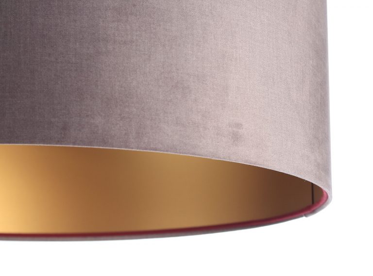 Sufitowa lampa z kloszem Lea Velvet to oświetlenie, które proponujemy do wnętrz glamour lub klasycznych. Welurowy walcowaty klosz intensyfikuje ciepłą barwę światła za sprawą miękkiej, aksamitnej tkaniny z zewnątrz oraz złotego wykończenia wnętrza, które pełni funkcję odbłyśnika. Dzięki temu pomieszczenie wypełnione jest ciepłym, szlachetnym i przytulnym blaskiem. Ten cynamonowy żyrandol pięknie prezentuje się w dużym salonie, na tle hebanowych, drewnianych mebli oraz w towarzystwie brązowych foteli wypoczynkowych. Uwielbia także złote i mosiężne dodatki, z którymi tworzy niezwykle harmonijną i wytworną całość. Będziesz zachwycony końcowym efektem wizualnym i świetlnym!