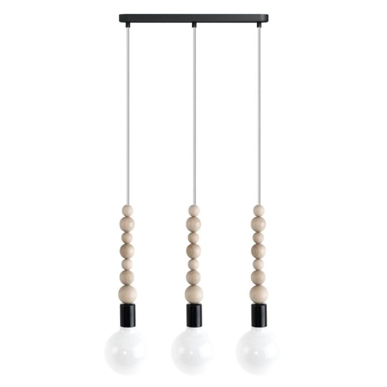 Nowoczesna forma całości urozmaicona jest przez niewielkie detale. Tuż przy oprawkach źródeł światła znajdują się, przyciągające uwagę, drewniane kulki o zróżnicowanej wielkości. Lampa z drewna i metalu LOFT SFARER 3L łączy w sobie elementy stylu nowoczesnego oraz skandynawskiego i do takich właśnie wnętrz w szczególności będzie pasować. Uniwersalna kolorystyka sprawia, że model ten bez problemu wkomponujesz jednak w praktycznie każdą aranżację. Aby zachować spójność wnętrza postaw raczej na neutralne barwy i meble w odcieniu naturalnego drewna lub bieli.
