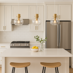 Designerska lampa wisząca Padre A3 poza trzema transparentnymi kloszami wyposażona jest również w metalowe elementy w kolorze miedzianym: oprawki na żarówki oraz listwę sufitową, z której na przewodach zwisają szklane bryły kloszy. Ta nowoczesna forma oraz perfekcyjnie skomponowana kolorystyka tworzy oryginalną, ale pełną stylu całość. Lampa wisząca na listwie Padre A3 z ciekawymi kloszami doskonale pasuje do aranżacji nowoczesnych, ale też loftowych oraz industrialnych.