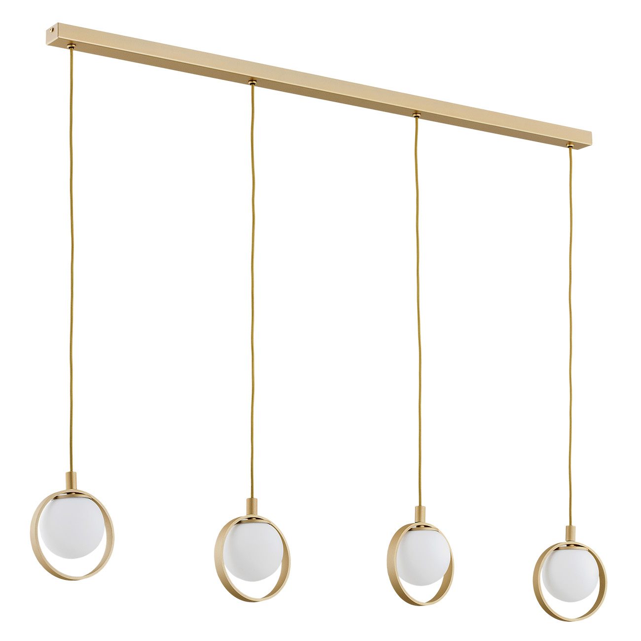 Lampa wisząca na złotej listwie z mlecznobiałymi kloszami Saturnia 4