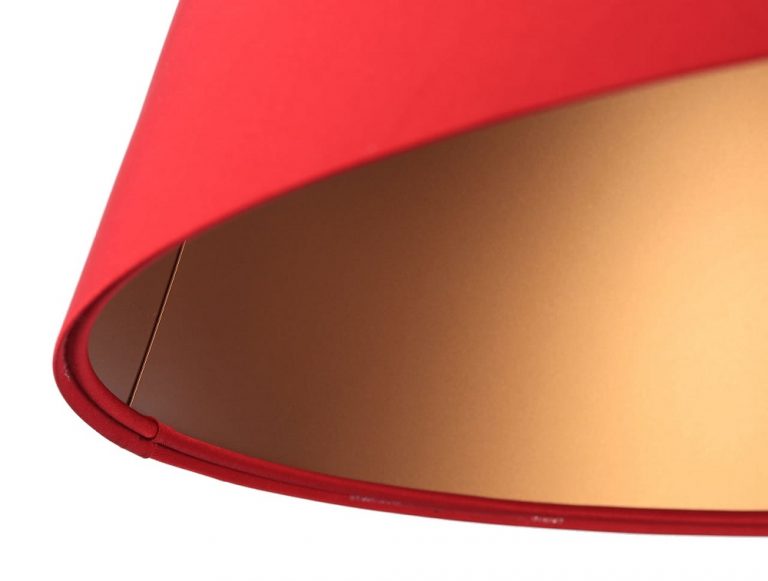 Oświetlenie sufitowe nie musi, a nawet nie powinno być jedynie praktycznym, ale również dekoracyjnym elementem wyposażenia wnętrz. Taka właśnie jest lampa wisząca ze stożkowym abażurem w niezwykle atrakcyjnym, czerwonym kolorze. Miłośnicy tego koloru będą zachwyceni tak niezwykłą ozdobą na suficie. Dodatkowo abażur ma miedziane wnętrze, które mieni się niczym złoto. Jak wiadomo połączenie czerwieni ze złotem to ponadczasowa klasyka, która wyjątkowo dobrze do siebie pasuje.