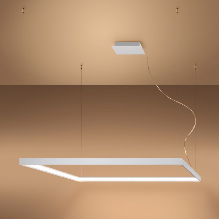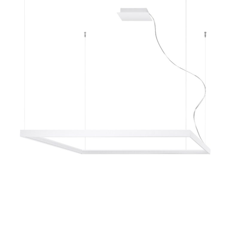 Centralnym punktem modelu jest klosz o geometrycznej linii kwadratu, idealnie wpisującej się w aranżacje o nowoczesnym charakterze. Jej minimalizm podkreślony został również białą kolorystyką, która nie tylko rozjaśnia wizualnie przestrzeń, ale również z łatwością dopasowuje się do innych kolorów. Biała lampa wisząca w nowoczesnym stylu pięknie zestawia się zarówno z modnymi beżowymi aranżacjami, jak i z przestrzeniami o bardziej wyrazistym charakterze – na przykład wyposażonymi w antracytowe lub czarne elementy.