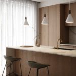 Biała lampa wisząca na listwie Enkel 3 L nad wyspę kuchenną