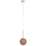 Najbardziej charakterystyczny jest tutaj kulisty klosz o średnicy 20 cm, który wykonano z półtransparentnego szkła w czekoladowym odcieniu. Lampa wisząca o nietypowej kolorystyce Bosso XS ociepla emitowane światło; polecane oświetlenie nie tylko wieczorem, ale również za dnia dodaje wnętrzu przytulności. Pojedynczy zwis z brązowym kloszem Bosso XS wyposażony jest także w metalowe elementy o mosiężnej barwie.