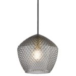 Sam klosz ma wysokość 21,5 cm i tyle samo średnicy, a ponadto wyróżnia się kryształkowym ozdobnym dekorem. Oferowany model doskonale sprawdza się jako lampa wisząca do kuchni i jadalni w eleganckim stylu, ale także jako oświetlenie do salonu, sypialni, bądź biura. Lampa wisząca Orbiform z przydymianym kloszem wyposażona jest w detale w kolorze mosiądzu, które podkreślają jej ozdobny charakter, a dodatkowo komponują się z grafitowym odcieniem klosza.
