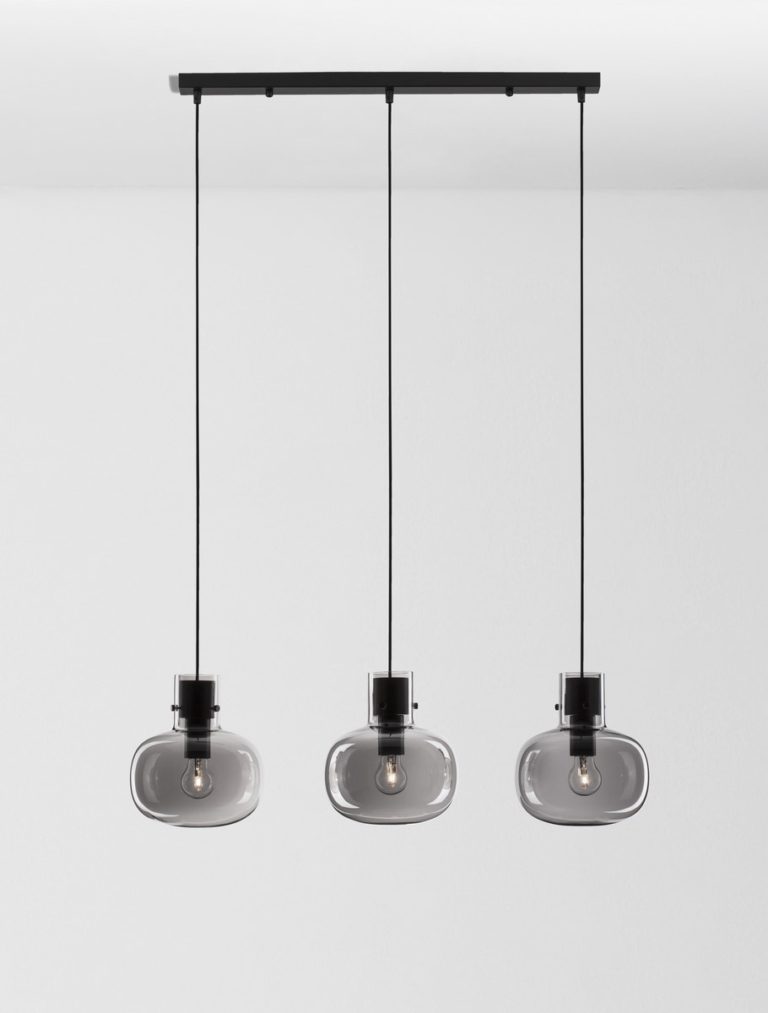 Lampa wisząca Padre A3 na listwie z przydymionymi kloszami może stać się uzupełnieniem Twojej kuchni i jadalni – wystarczy, że zamontujesz ją nad stołem, wyspą kuchenną lub po prostu w centralnej części pomieszczenia. Koniecznie zwróć uwagę na jej wymiary. Polecany model oświetlenia do kuchni i jadalni ma całkowitą szerokość 86 cm oraz regulowaną wysokość w przedziale od 40 do 145 cm. Jeśli chcesz każdy klosz możesz zawiesić na innym poziomie. Dodatkowo do szklanej lampy na listwie w industrialnym stylu dopasować możesz żarówki z regulacją natężenia światła – idealne na na wieczorny relaks.