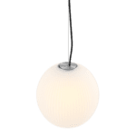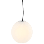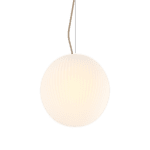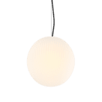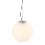 Jej ryflowany kulisty klosz wykonany z białego szkła nie tylko efektownie rozprasza światło, ale także dodaje wnętrzu wyjątkowego charakteru. Lampa wisząca Pepo z ryflowanym kloszem pasuje zarówno do aranżacji typowo nowoczesnych, jak i do bardziej klasycznych wnętrz, wnosząc do nich powiew współczesności. Lampa ryflowana Pepo wyposażona jest również w linkę montażową oraz kabel w dwóch kolorach do wyboru: kremowym i czarnym.