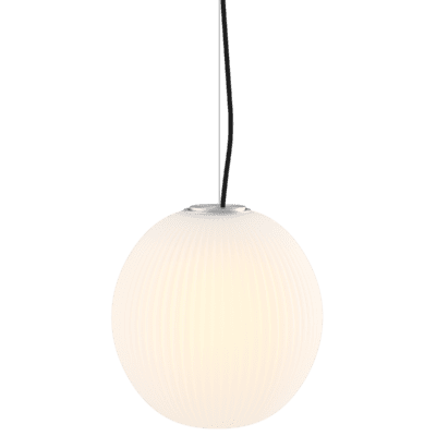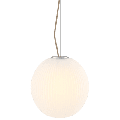 Jej ryflowany kulisty klosz wykonany z białego szkła nie tylko efektownie rozprasza światło, ale także dodaje wnętrzu wyjątkowego charakteru. Lampa wisząca Pepo z ryflowanym kloszem pasuje zarówno do aranżacji typowo nowoczesnych, jak i do bardziej klasycznych wnętrz, wnosząc do nich powiew współczesności. Lampa ryflowana Pepo wyposażona jest również w linkę montażową oraz kabel w dwóch kolorach do wyboru: kremowym i czarnym.