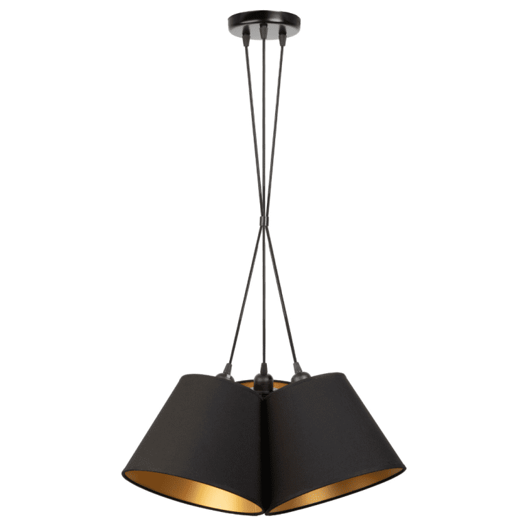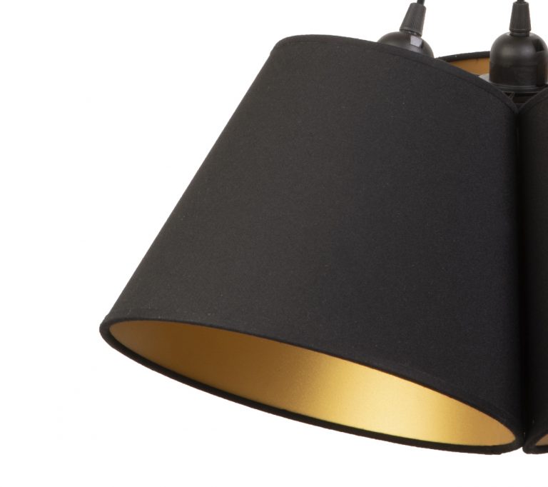Abażury tej niesamowitej oprawy oświetleniowej wykonane zostały z czarnej tkaniny najwyższej jakości, co gwarantuje trwałość produktu oraz odporność na uszkodzenia. Tym, co wywołuje zachwyt, nie jest jedynie forma lampy, ale wewnętrzne wykończenie kloszy.