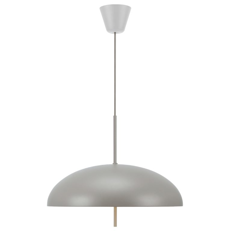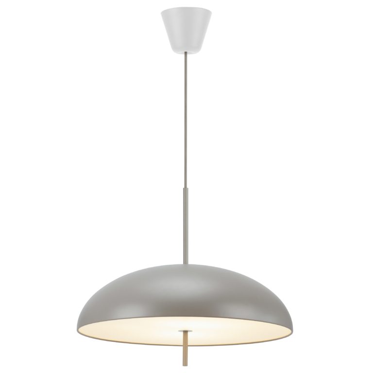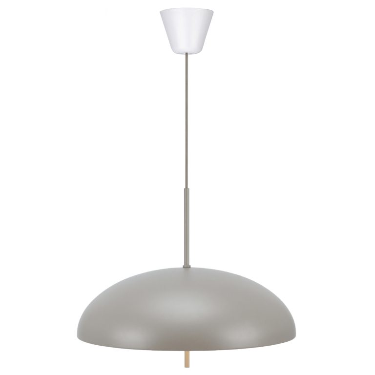 Lampa wisząca z długim przewodem Versale 2 to również designerski minimalistyczny klosz w kształcie kopuły z przesłoną wyposażoną w dodatkowy, wystający element. Oferowane oświetlenie wewnętrzne wykonane jest z dwóch materiałów: metalu oraz tworzywa sztucznego, a jego główna kolorystyka bazuje na brązowoszarej tonacji. Lampa wisząca-kopuła Versale 2 w neutralnej kolorystyce umożliwia także zastosowanie funkcjonalne żarówki ściemniającej.