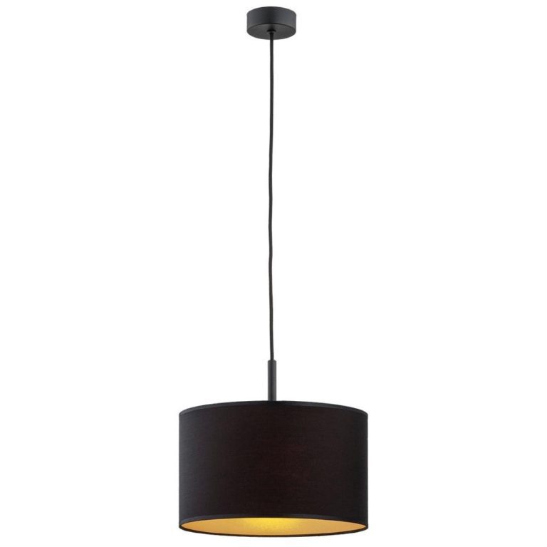 Uniwersalność polecanej oprawy świetlnej pozwala wykorzystać ją w roli lampy do salonu, sypialni, kuchni, ale i biura, czy innej bardziej oficjalnej przestrzeni. Klasyczna lampa wisząca z czarnym abażurem Karin wykonana jest z tkaniny oraz stali, dlatego charakteryzuje ją stylowość oraz solidność. Model wyposażony jest w klosz o średnicy 40 cm oraz wysokości 24 cm. Abażurowa lampa wisząca Karin ma całkowitą długość 107 cm, możesz ją jednak skrócić (maksymalnie do 40 cm).