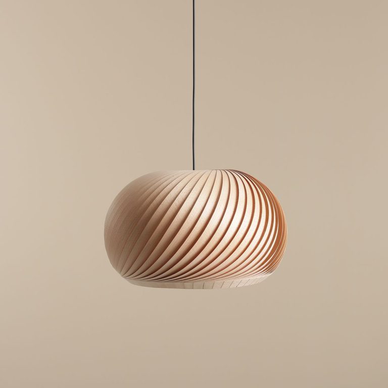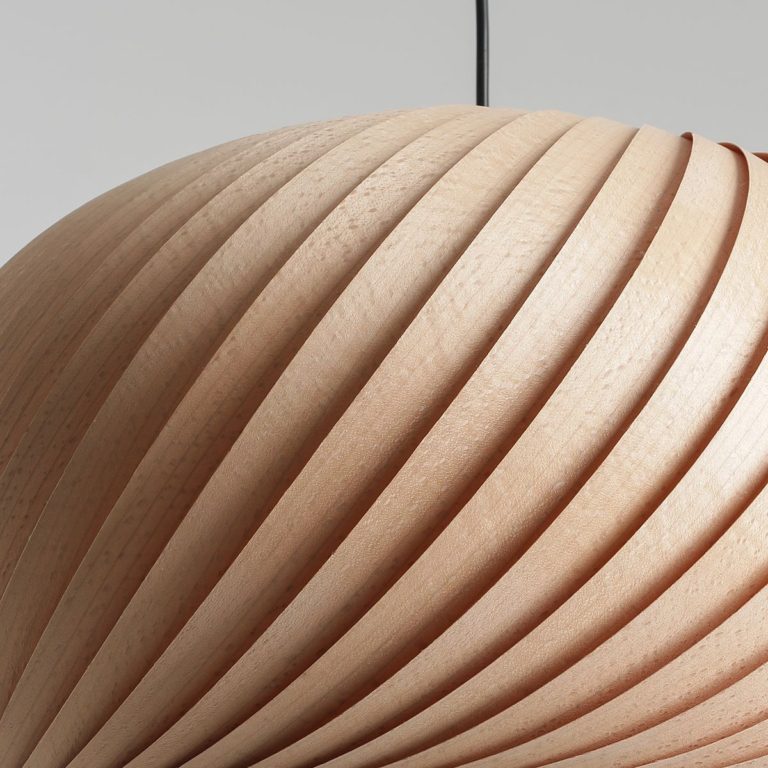 Oświetlenie Nature Dark L wyposażone jest w trzy główne części: podsufitkę, zawieszenie oraz designerski abażur z drewna o charakterystycznej skręconej strukturze. Wygląd klosza przywodzi na myśl plisowaną tkaninę. Cała oprawa inspirowana jest stylem ekologicznym i doskonale pasuje do wszystkich aranżacji, do których wprowadzić chcesz elementy natury. To idealna lampa wisząca do kuchni i jadalni w stylu skandynawskim, boho lub rustykalnym.