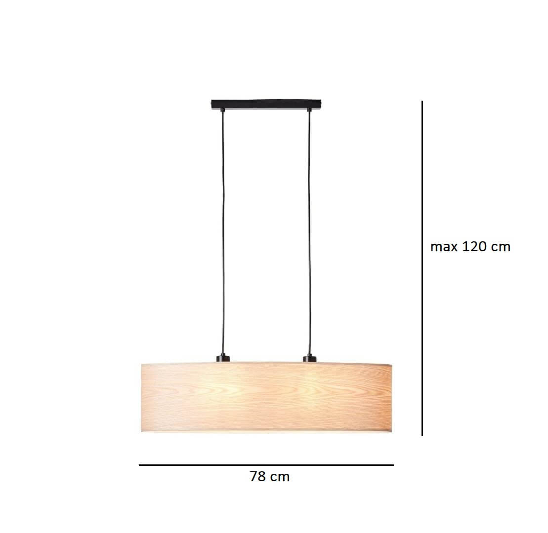 Prosta budowa i przemyślany design zapewnia funkcjonalność oraz nowoczesny wygląd omawianego modelu. Lampa do kuchni i jadalni Romm 2 wyposażona jest w szeroki na 78 cm klosz, który wykonany został z drewna w jego naturalnym odcieniu. Abażur ma kształt niewysokiego cylindra, który doskonale rozprasza światło po całej przestrzeni. Dzięki naturalnemu drewnu, oprawa ta również przepięknie ociepla aranżację, wprowadzając do Twojego domu wyjątkowo przytulną atmosferę.
