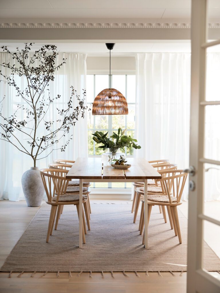 Klosz lampy boho Lace, pleciony z wysokiej jakości rattanu, wprowadza do wnętrza ciepły, przytulny klimat, dzięki czemu to wprost idealna lampa do salonu, sypialni i jadalni – wnętrz, w których się relaksujemy. Lampa wisząca z rattanu Lace wyposażona jest również w podsufitkę i kabel w czarnym kolorze, które podkreślają beżowy odcień klosza. Lampa rattanowa najlepiej prezentuje się w zestawieniu z dodatkami wykonanymi z różnych naturalnych materiałów – na przykład z jutowym dywanem, lnianymi zasłonami, czy drewnianymi meblami o naturalnej kolorystyce.