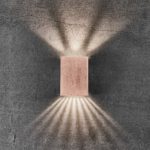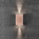 Oprawa wyróżnia się minimalistyczną formą oraz unikatową kolorystyką w odcieniu szczotkowanej miedzi – całość emanuje subtelną elegancją! Lampa zewnętrzna wyposażona jest również w zintegrowany LED o przyjemnie ciepłej barwie oświetlenia 3000 K. Klosz emituje światło w górę i w dół, dając na elewacji ciekawy efekt. Model możesz wykorzystać do podświetlenia wielu miejsc – na przykład wejścia do domu.