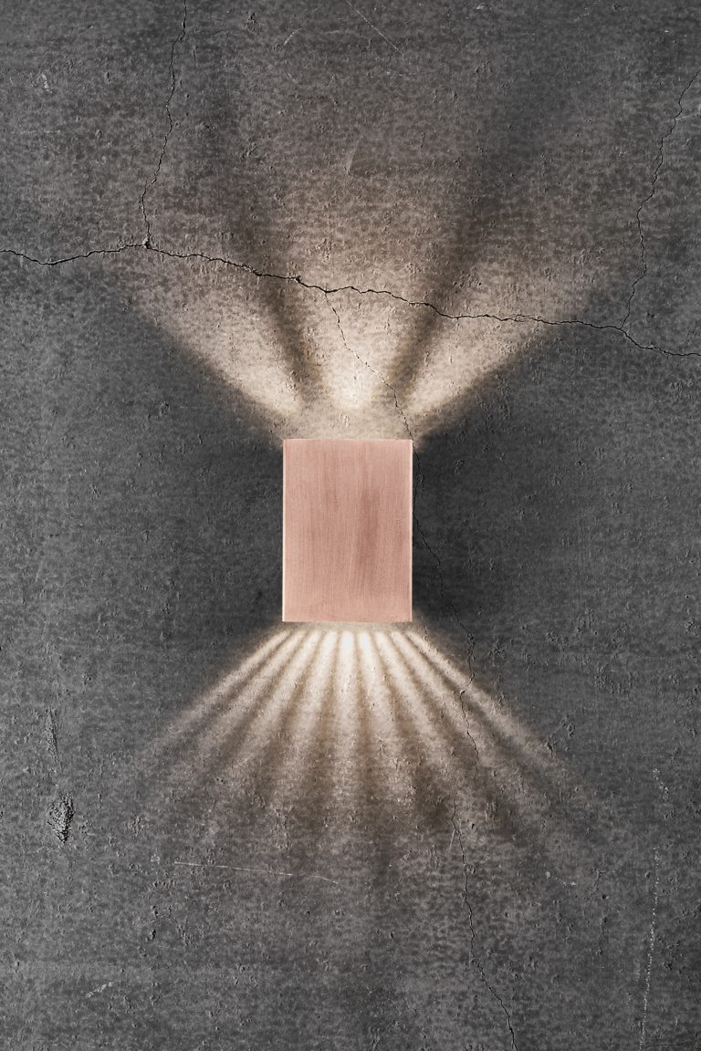 Oprawa wyróżnia się minimalistyczną formą oraz unikatową kolorystyką w odcieniu szczotkowanej miedzi – całość emanuje subtelną elegancją! Lampa zewnętrzna wyposażona jest również w zintegrowany LED o przyjemnie ciepłej barwie oświetlenia 3000 K. Klosz emituje światło w górę i w dół, dając na elewacji ciekawy efekt. Model możesz wykorzystać do podświetlenia wielu miejsc – na przykład wejścia do domu.