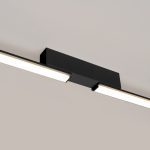 Liniowa lampa sufitowa Legom LED została wykonana z aluminium, który nadaje jej trwałości, ale i lekkości. Zarówno klosz, jak i stelaż utrzymane są w klasycznej czerni – barwie typowej dla współczesnych aranżacji. Surowa forma podłużnej listwy bez zbędnych ozdobników doskonale prezentuje się w zestawieniu z betonem, szkłem i drewnem. Aby zachować estetyczną spójność wystroju, do czarnej lampy warto dopasować również inne elementy wyposażenia w tym samym kolorze.
