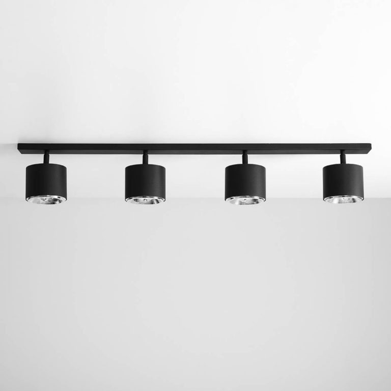 Model ten wykonany został z metalu w kolorze czarnym. Każdy z czterech kloszy ma średnicę 11,5 cm, a sama listwa sufitowa szeroka jest na aż 100 cm! Reft 4 świetnie sprawdzi się zarówno jako oświetlenie dodatkowe, jak i główne źródło światła nie tylko w Twoim domu, ale również w biurze.