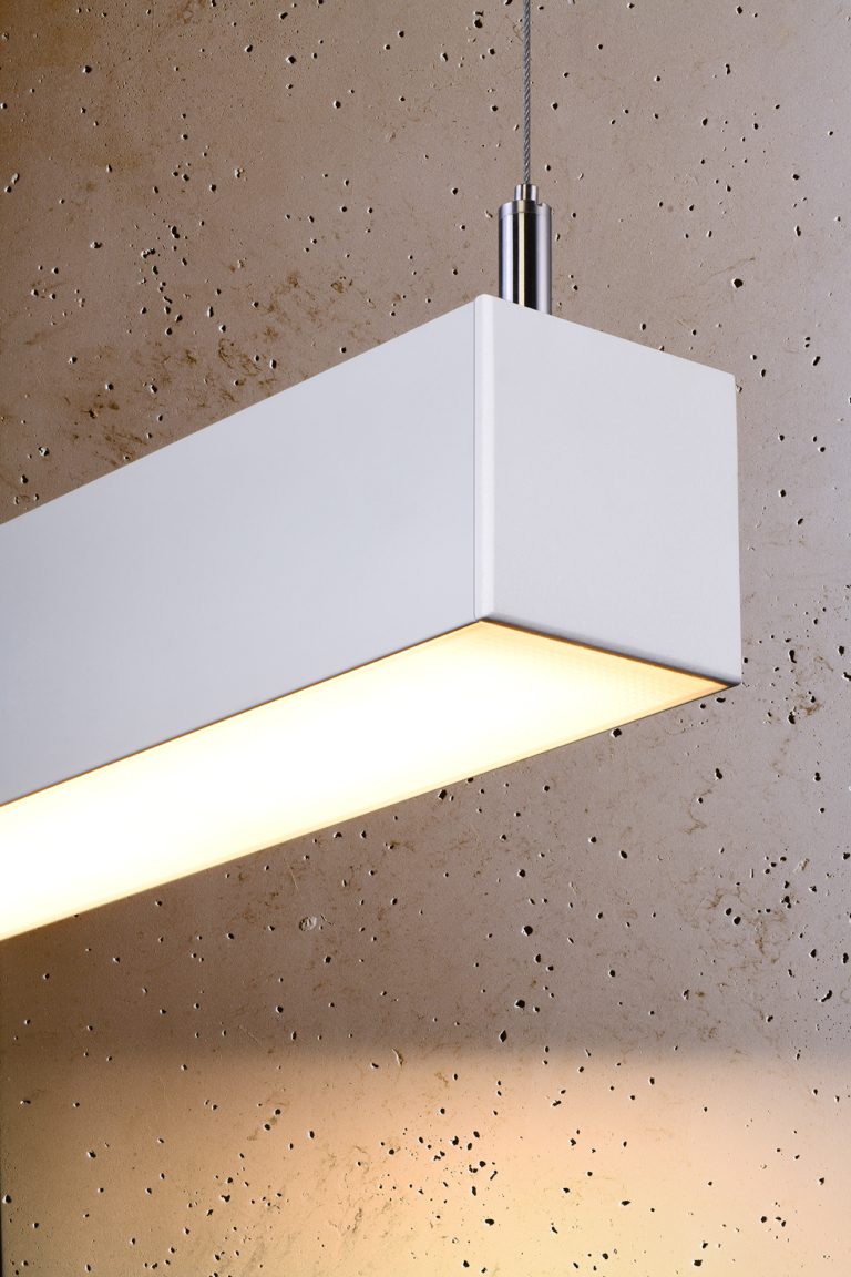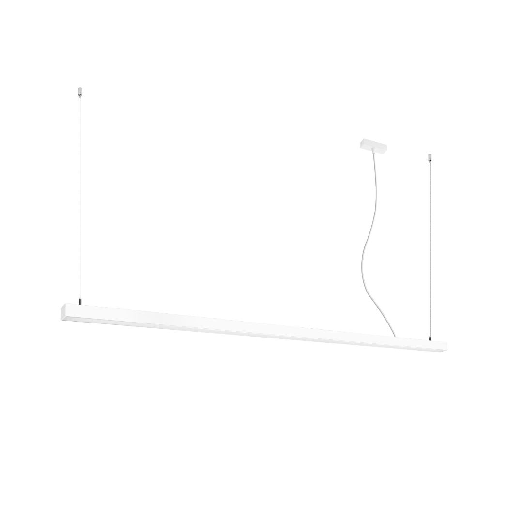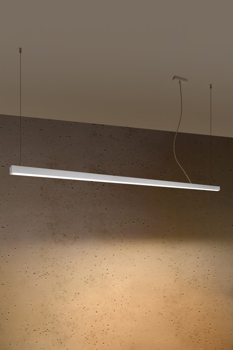 Nowoczesna listwa wisząca nad duży stół jadalniany Pinne XXL wykonana została z trwałego, ale lekkiego aluminium w białym kolorze, który z łatwością wkomponowuje się zarówno w jaśniejsze, jak i ciemniejsze kolorystyczne wnętrza, dając szerokie możliwości aranżacyjne. Dzięki minimalistycznej formie, oprawa nie dominuje przestrzeni, a subtelnie ją uzupełnia.