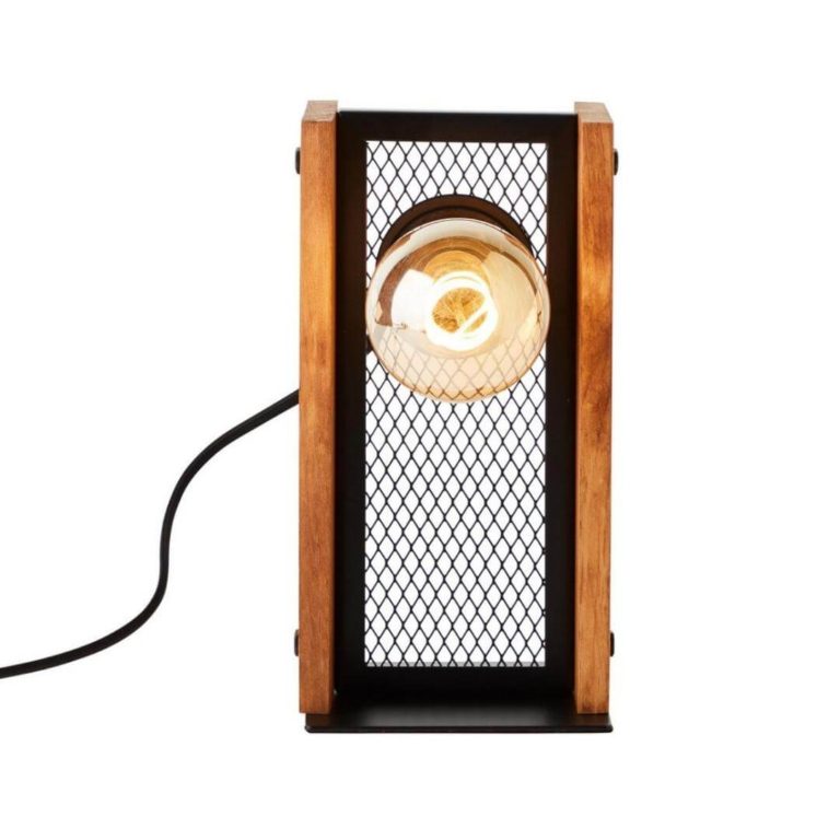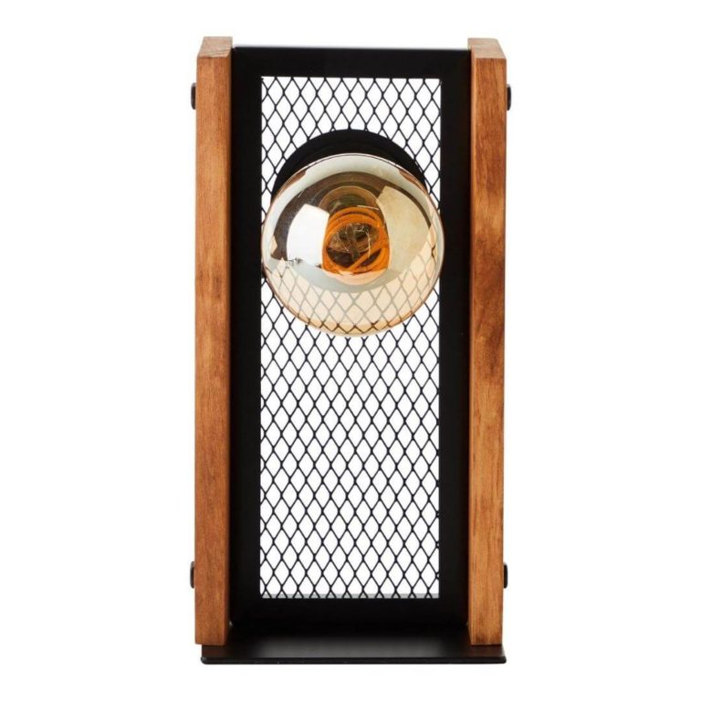 Lampka nocna do sypialnia Calandra wykonana jest z solidnych materiałów: metalu i drewna. Na jej wygląd składa się prosta podstawa oraz nietypowy klosz z drucianą siateczką oraz drewnianymi bokami. Ta wyjątkowo oryginalna lampka w industrialnym stylu zaprojektowana została dla jednego źródła światła. Najlepiej pasować do niej będą żarówki z ozdobnym żarnikiem lub bańką – na przykład z kolorowego szkła – które dodatkowo wpłynie na emitowaną barwę światła.