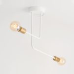Loftowa lampa sufitowa Sola 2 składa się z podsufitki, wysięgników oraz dwóch oprawek na źródła światła. Została ona wykonana z wysokiej jakości metalu, który pokryto śnieżnobiałym kolorem. Oprawki pomalowane na złotą barwą nadają lampie sufitowej Sola 2 wyjątkowego charakteru. Model ten mierzy 62 cm szerokości i 36 cm wysokości – jest odpowiednio duży, aby był zauważony w pomieszczeniu. Równocześnie, jego prosta forma nie przytłacza i stanowi ciekawy element dekoracyjny pomieszczenia.