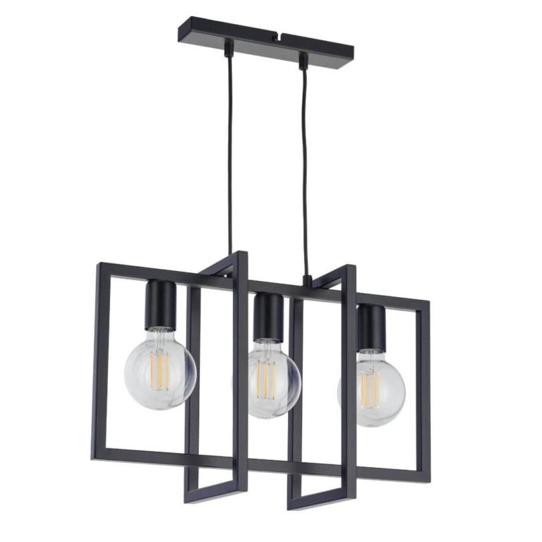 Niewątpliwie, jedną z największych zalet loftowej lampy wiszącej w klasycznej czerni, jest również jej solidne wykonanie oraz przemyślana konstrukcja. Omawiany model wyprodukowany jest w dużej mierze ze stali, dzięki czemu nie tylko wyróżnia się trwałością, ale też nie sprawia problemów podczas domowych porządków. Metalowa lampa w czarnym kolorze Davis 3 składa się, między innymi, z listwy sufitowej, trzech ram w formie stelaża (dwie mniejsze nachodzą na główną, większą ramę) oraz w trzy oprawki na źródła światła. Odpowiednie będą tu żarówki E27.