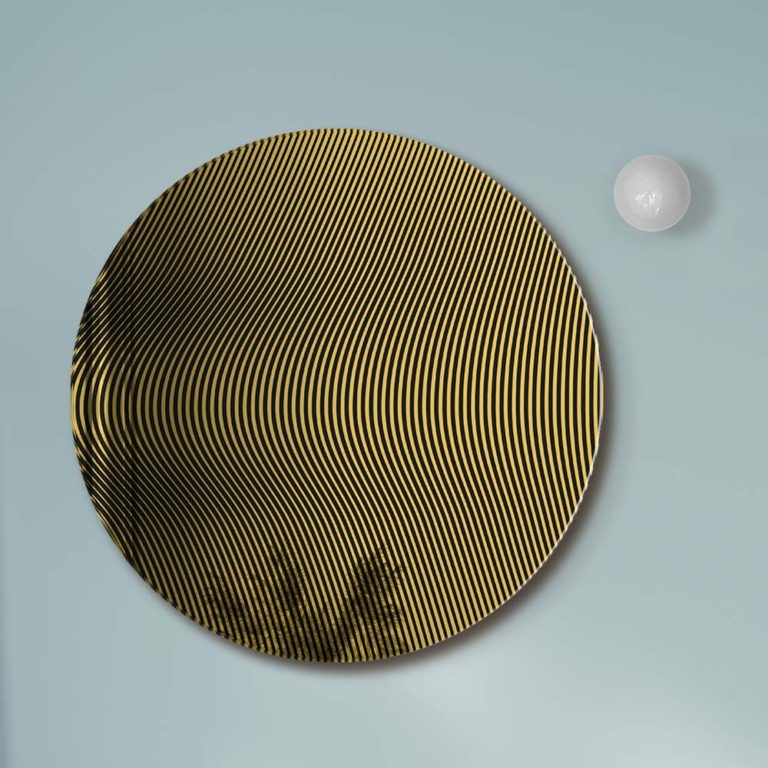 Zwierciadło ścienne Cosmic Venus dostępne jest w naszym sklepie internetowym w dwóch różnych rozmiarach (50 i 100 cm średnicy), dlatego bez problemu wkomponujesz je zarówno w mniejsze, jak i większe pomieszczenie. Możesz zdecydować się również na kilka modeli i stworzyć z nich niezwykle atrakcyjną wizualnie kompozycję ścienną. Lustro Cosmic Venus w nowoczesnym stylu idealnie współgra z innymi dekoracjami i dodatkami w złotym kolorze.