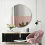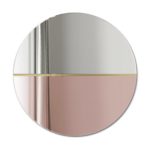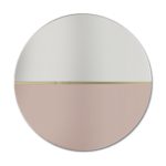 Lustro Demi z taflą rose gold pozbawione jest klasycznej ramy i wyróżnia się modnym okrągłym kształtem. Model dostępny jest w kilku wielkościach, dlatego z łatwością dopasujesz je do wybranego pomieszczenia. Lustro bez ramy Demi posiada również praktyczne wieszaki, które pozwolą Ci w prosty sposób zamontować zwierciadło na ścianie. Tafla lustra wzmocniona została folią, która chroni szkło przed stłuczeniem.
