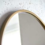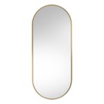 Polecane przez sklep online Ryssa lustro w nowoczesnym stylu ze złotą ramą Ambient Slim przeznaczone jest do zamontowania na ścianie – model wyposażono w dwa praktyczne wieszaki, które znajdują się w jego tylnej części. Oferowane zwierciadło na ścianę ma stylowy owalny kształt i występuje w różnych rozmiarach do wyboru, co zdecydowanie ułatwi Ci dopasowanie go do wybranego wnętrza!