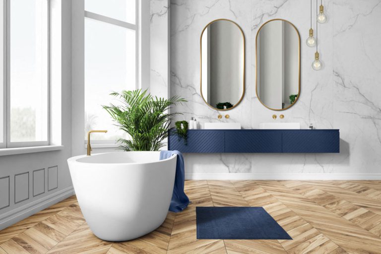 Lustro w nowoczesnym stylu ze złotą ramą Ambient Slim wykonane jest z najwyższej jakości materiałów, które dodatkowo wyróżniają się wodoodpornymi właściwościami, dzięki czemu model doskonale odnajduje się w roli lustra łazienkowego. Zwierciadło Ambient Slim to jednak również doskonały element wyposażenia garderoby i przedpokoju, a także sypialni i salonu.