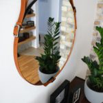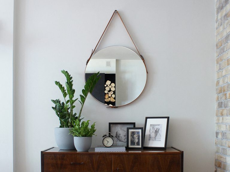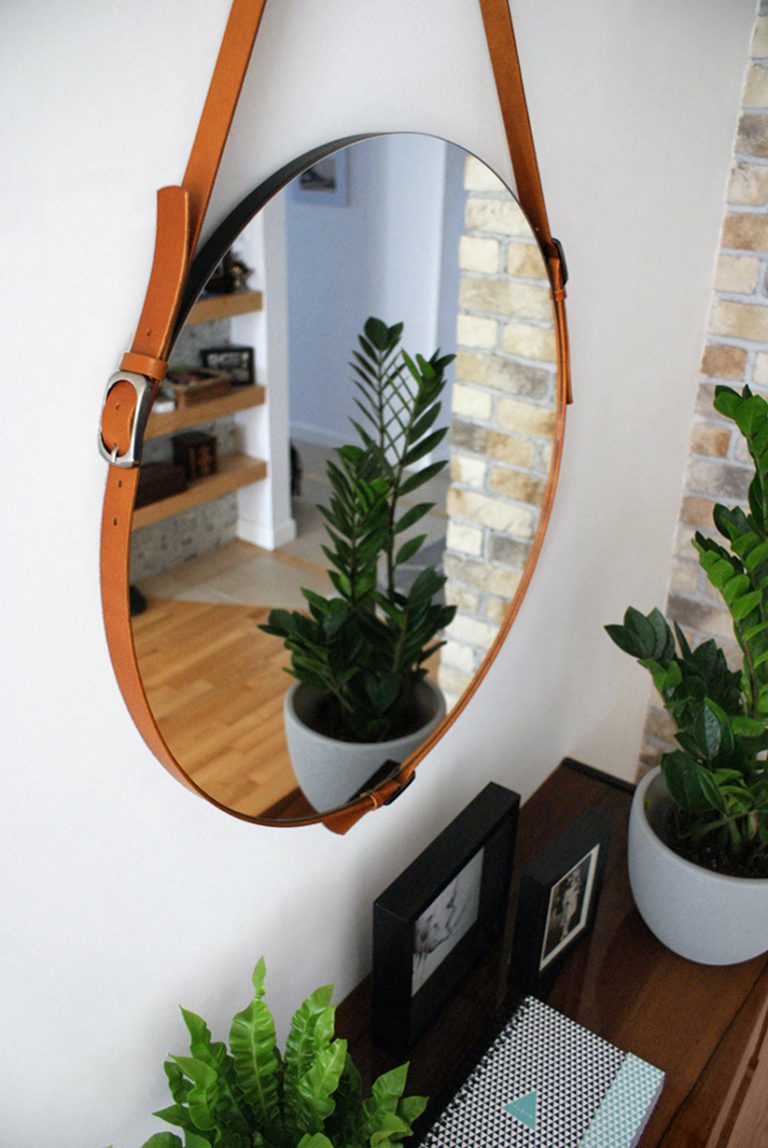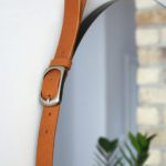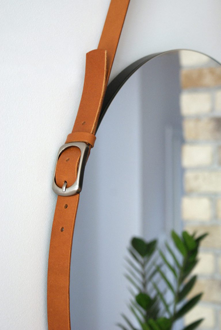Lustro wiszące Eclecti w nowoczesnym stylu ma modny okrągły kształt i oprócz krystalicznej tafli wyposażone jest w ramę w postaci paska wykonanego z naturalnej skóry w kolorze rudym. To właśnie ten element sprawia, że oferowane lustro nowoczesne ujmuje swoim wyglądem. Zwierciadło wiszące Eclecti zabezpieczone zostało również specjalną folią, która wzmacnia taflę i zabezpiecza ją przed stłuczeniem (w razie rozbicia szkło pozostaje w ramie).
