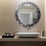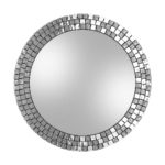 Lustro z ozdobną ramą Aurea Silver w eleganckim stylu wyposażone jest w obramowanie wykonane ze szklanej mozaiki, na którą składają się małe srebrne elementy. Model ma uniwersalny i modny okrągły kształt, dostępny jest również w trzech rozmiarach do wyboru (60, 70 i 80 cm). Pozwoli Ci to na dokładne dopasowanie lustra do łazienki, sypialni lub innego pomieszczenia, w którym planujesz je zawiesić. Warto zaznaczyć, że lustro dekoracyjne Aurea Silver wykonane zostało z wodoopornych materiałów.