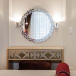 Zastanawiasz się do jakich aranżacji pasuje srebrne lustro z ozdobną ramą Aurea Silver? Oferowane lustro łazienkowe najlepiej prezentuje się we wnętrzach, w których znajdą się również inne elementy wyposażenia w podobnym stylu i kolorystyce. Zwierciadło z dekoracyjną ramą Aurea Silver przepięknie komponuje się głównie ze stylistyką glamour, ale także z wystrojem nowoczesnym.
