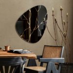 Pod względem estetycznym, lustro z ozdobną taflą Fly Kintsugi wyróżnia się nieregularnym zaokrąglonym kształtem, który idealnie pasuje do nowoczesnych aranżacji, w których często stosuje się nietypowe formy. Kolejną z charakterystycznych cech polecanego lustra dekoracyjnego jest jego niezwykła czarno-złota tafla, nawiązująca do wyglądu marmuru. Całość wprost zachwyca nietuzinkowością!
