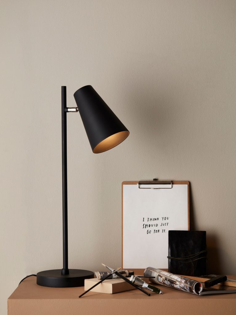 Metalowa lampa biurkowa Cornet z regulowanym kloszem
