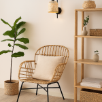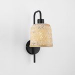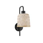 Metalowa lampa ścienna Talitas z rattanowym kloszem