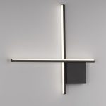 Metalowa lampa ścienna w czarnym kolorze Chota B wyposażona jest w klosz w formie skrzyżowanych paneli z dodatkowym elementem w postaci kwadratu, który stanowi dekoracyjne uzupełnienie całości. Dzięki swojej oryginalnej formie, kinkiet ścienny Chota B idealnie prezentuje się we współczesnych aranżacjach, nadając im dynamizmu i unikatowości.