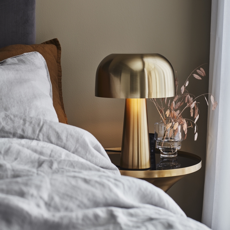 Metalowa lampa stołowa Blanca z kloszem typu kopuła