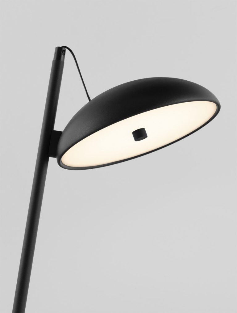 Model składa się z podstawy w kształcie obręczy, prostej nóżki oraz półokrągłego klosza. Czarny stelaż i klosz oferowanej lampy metalowej tworzą harmonijną całość, która wnosi do wnętrza subtelną elegancję, a jednocześnie stanowi wyrazisty akcent kolorystyczny. Metalowa lampa stołowa Viboral w czarnym kolorze doskonale pasuje do wnętrz o chłodnym surowym wyrazie, w których dekoracyjność ograniczona jest do minimum.