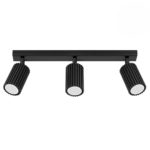 Metalowa lampa sufitowa Dolkar 3 w czarnym kolorze składa się z listwy z trzema regulowanymi reflektorami, które umożliwiają precyzyjne skierowanie strumienia światła w wybrane miejsca. Lampa na sufit Dolkar 3 sprawdzi się jako oświetlenie do pracy, czytania, czy też do akcentowania do różnych elementów wnętrza.