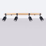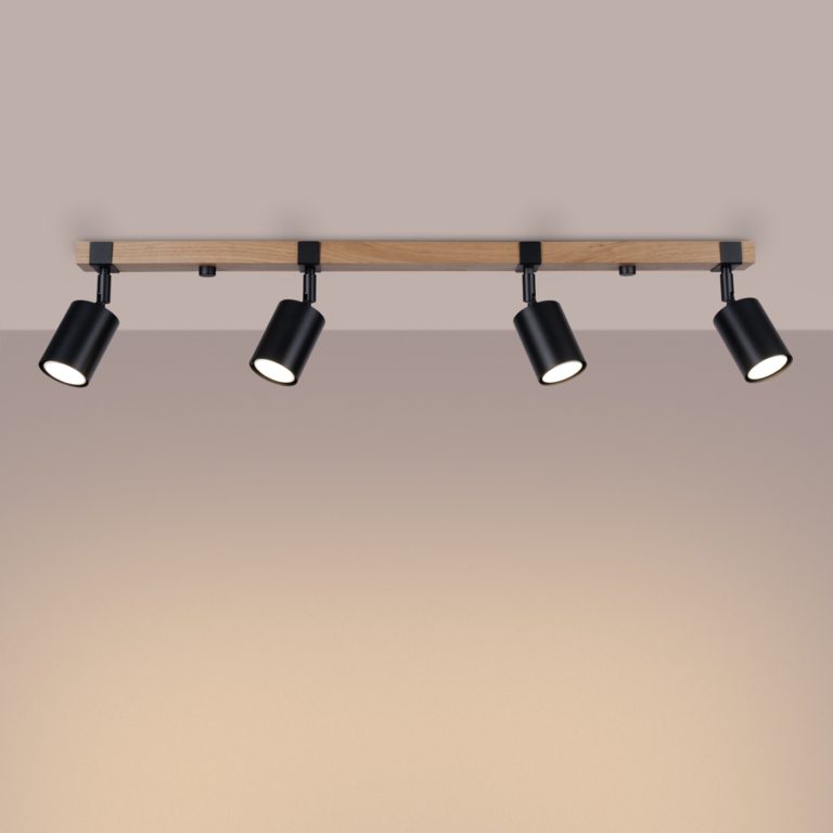 Lampa nowoczesna Lily 4 składa się z prostej listwy sufitowej wykonanej z drewna oraz czterech metalowych kloszy w kształcie tuby. Każdy z nich przystosowany jest do jednej żarówki LED GU10 (zwykłej i ściemniającej światło). Metalowa lampa sufitowa Lily 4 utrzymana jest w uniwersalnej beżowo-czarnej kolorystyce.